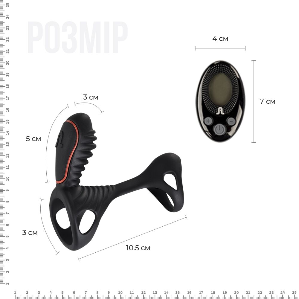 Управление эрекционным кольцом Gladiator происходит при помощи беспроводного пульта управления LRS с удобным переключением режимов вибрации и визуальным отображением текущего режима на жидкокристаллическом экране.