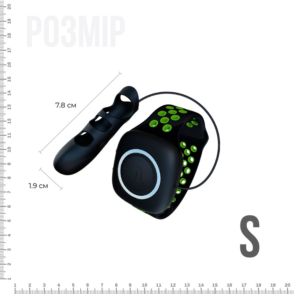Пульт управления и зарядка находятся на специальном браслете, который элегантно крепится на запястье и соединяется с самой насадкой силиконовым шнурком, что обеспечивает фиксацию насадки на пальце. Благодаря этому нам удалось максимально уменьшить размер самой насадки, что делает её более удобной и манёвренной. Вся вибрация сконцентрирована на кончике пальца. Всего 10 режимов вибрации, который вы переключаете, нажимая кнопку на браслете.