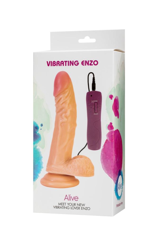У нас вы можете купить реалистичный фаллоимитатор Alive Enzo. Он порадует вас средними размерами (общая длина 21 см, длина вводимой части 15,5 см, максимальный диаметр 4,3 см) и эргономичной формой. Данная модель идентична настоящему члену: слегка изогнутый ствол, ярко выраженная розовая головка, множество складочек и бугристые венки. Для изготовления фаллоимитатора Alive Enzo используется приятный на ощупь PVC-материал. Фаллоимитатор оснащен мощным и в то же время тихим моторчиком с 10 режимами вибрации. За счет того, что моторчик расположен посередине - вибрация равномерно распространяется по всему стволу.