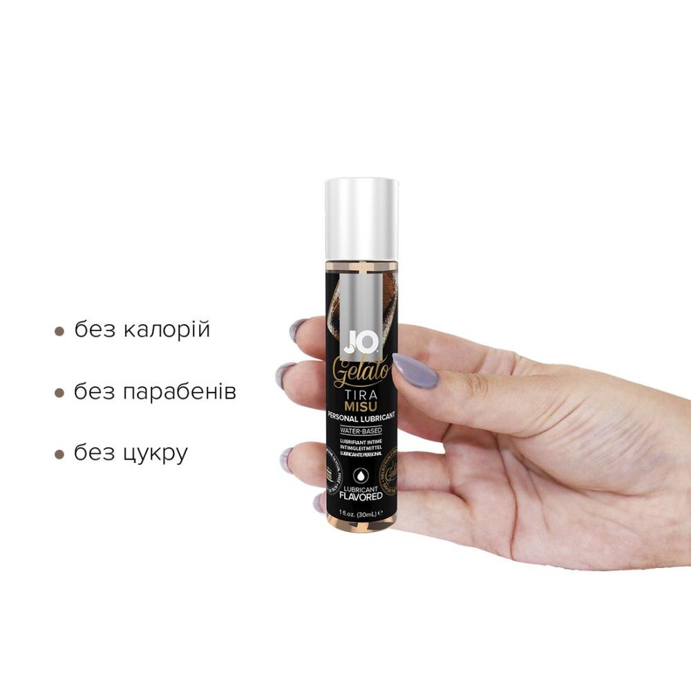 Лубрикант на водной основе JO GELATO TIRAMISU, тирамису (30 мл) из коллекции интимных вкусовых лубрикантов, созданных специально для яркой прелюдии и комфортной близости. Изготовленные с использованием глицерина на растительной основе и других высококачественных ингредиентов, средства этой коллекции обеспечивают приятное и длительное скольжение. В формуле этих вкусовых лубрикантов нет сахара, парабенов и пропиленгликоля — для более мягкого скольжения. Без липкости и послевкусия.