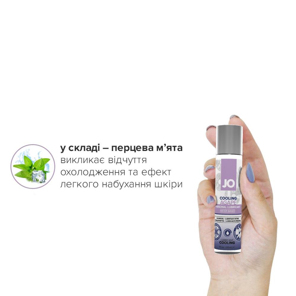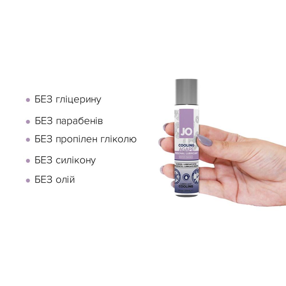 Смазка на водной основе JO AGAPE — COOLING — это интимный лубрикант с охлаждающим эффектом, созданный с целью имитировать естественную женскую смазку. Эта новая и усовершенствованная формула на водной основе не содержит глицерина, гликоля и парабенов; идеально подходит для людей, которые руководствуются составом средства при его покупке. Плюс ко всему невероятно легкая консистенция обеспечивает нежное скольжение, такое же гладкое как шелк. Вы должны попробовать это средство!