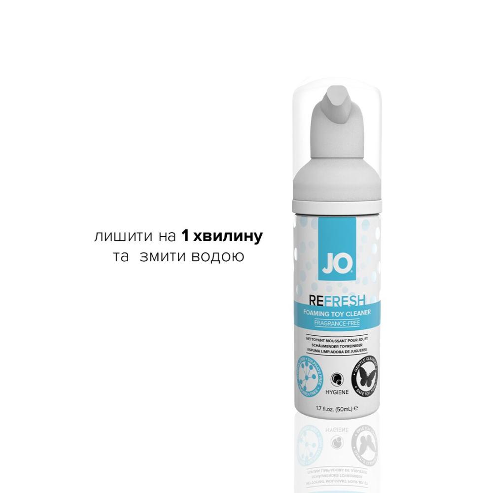 Мягкая пенка для очистки игрушек JO REFRESH (50 мл)- это нежная забота с помощью очищающего пенного средства для секс - игрушек JO® REFRESH. Мягкая формула отличается быстротой очистки и не оставляет отложений. Отсутствие триклозана и парабенов делает средство безопасным для материалов любых игрушек, а также для рук во время использования. Достаточно нанести слой пены на игрушку и оставить на 5-10 секунд и затем смыть. В случае сильных загрязнений необходимо втирать средство более тщательно.