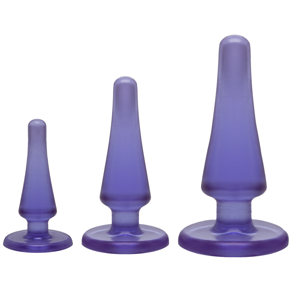 Предлагаем купить набор анальных пробок Doc Johnson Crystal Jellies Anal Initiation Kit. Стимуляторы имеют плоское основание, которое одновременно служит безопасным ограничителем.Набор выполнен из современного гипоаллергенного материала с добавлением антибактериальной формулы Sil-A-Gel. В наборе три классические пробочки для анальной стимуляции. Форма конусоподобная, с безопасным расширением к низу и ограничителем. Этот набор идеален и для новичков, только открывающих для себя мир анальных наслаждений, и для более опытных партнёров - для стимуляции ануса перед сексом или использования во время классической близости. Анальные втулки изготовлены из приятного прозрачного эластомера, умеренно упругие и гибкие для комфортного введения.