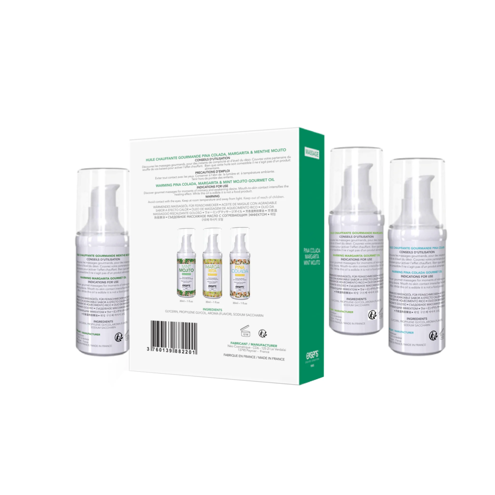 Пина Колада, Маргарита и мятный Мохито - то, что нужно для горячей вечеринки! Чтобы устроить настоящий праздник чувственной эротики, достаточно купить набор массажных масел с согревающим эффектом Exens Let’s Celebrate, которые разогревают не хуже аперитива и сочетают в себе аромат и вкус любимых коктейлей.