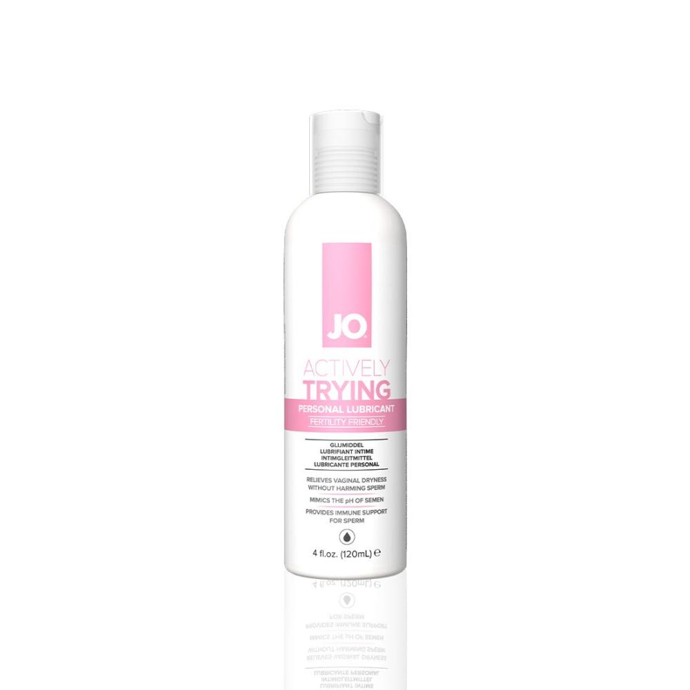 JO Actively Trying — лубрикант на водной основе, создающий здоровую среду для сперматозоидов, оптимизирующий уровень pH, имитирующий щелочной баланс семенной жидкости и фертильной цервикальной слизи. Обладает идеальной вязкостью. Смазка обеспечивает комфортное нежное скольжение без липкости. Позволяет свободно смешиваться мужским и женским выделениям без воздействия препятствующих элементов, помогая сперматозоидам завершить путь к оплодотворению яйцеклетки и делая близость более чувственной и яркой. Помогает справиться с вагинальной сухостью без вреда для спермы.