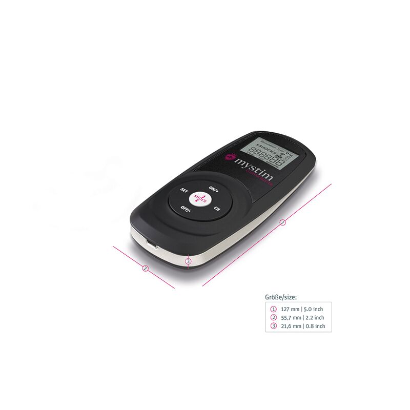 Этот стимулятор представляет собой передатчик и одновременно пульт управления игрушками для электростимуляции Mystim. Можно также использовать электроды. Большой и легко читаемый при любом освещении дисплей с подсветкой позволяет хорошо ориентироваться в настройках. Особенности данного электростимулятора: