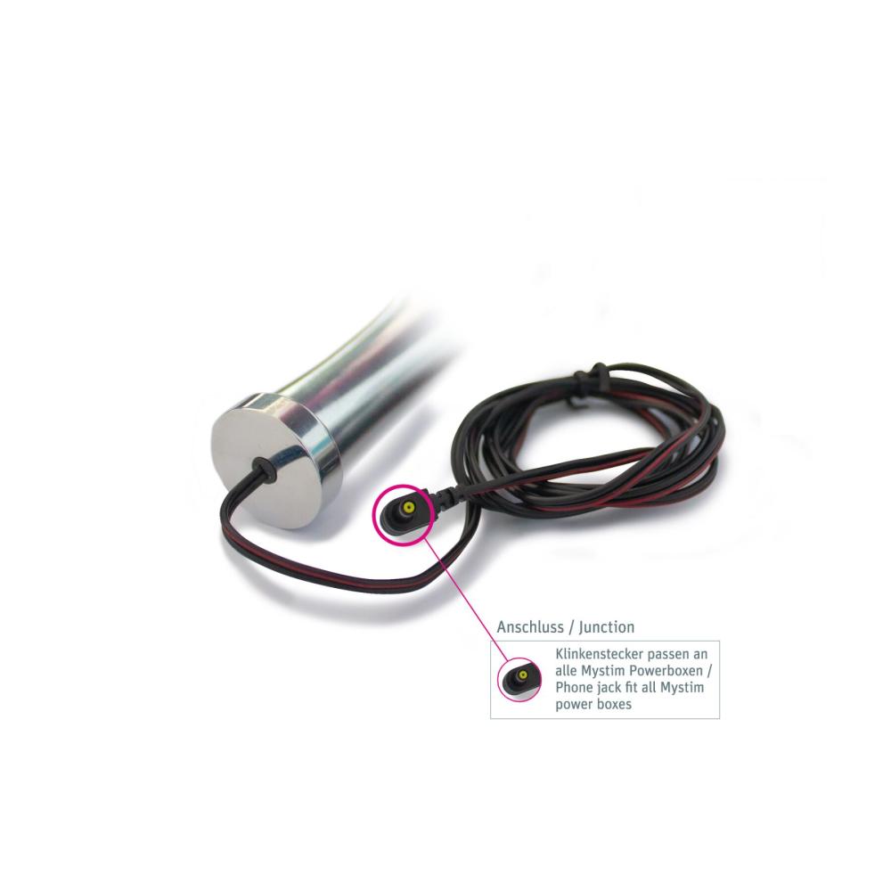Полюса + и - расположены в нескольких сантиметрах от наконечника. Для активации полюсов используйте электростимулятор Mystim Tension Lover или Mystim Pure Vibes. Необходим лубрикант на водной основе для обеспечения проводимости и хорошего скольжения. Легко очищается водой и мягким мылом, а также неагрессивными дезинфицирующими средствами.