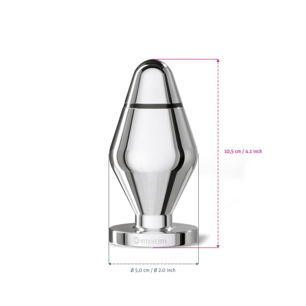 Отличная находка для тех, кто бы хотел впервые попробовать анальную электростимуляцию: гладкая пробка конической формы с мягко закругленным наконечником абсолютно комфортно входит внутрь и, за счет расширяющейся части, вы будете ощущать приятную заполненность. Остается только подключить электроды (вам понадобиться специальное устройство — Cluster Buster, Mystim Tension Lover или Mystim Pure Vibes) и наслаждаться… И только от вас зависит, будут ли это сладостно-мучительные часы дразнящего воздействия, или бурный взрыв ощущений за считанные минуты!