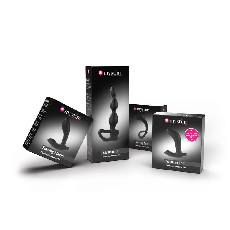 - во-первых, технология Flex&Stay от Mystim позволяет скручивать и гнуть массажер в любом направлении, и, зафиксировав, использовать его в том виде, в котором вам хочется;