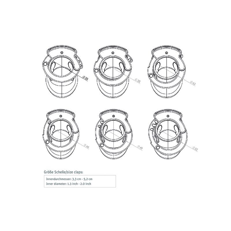 - внутренний диаметр с 6-ступенчатым регулированием, от 33 до 52 мм.