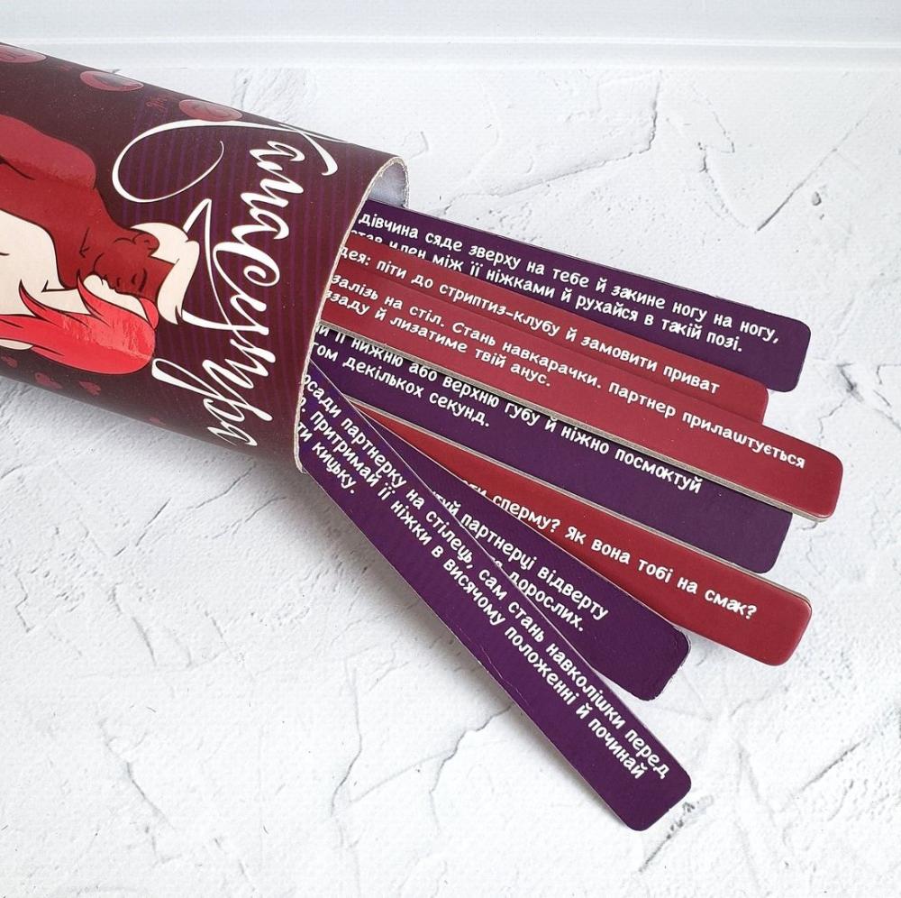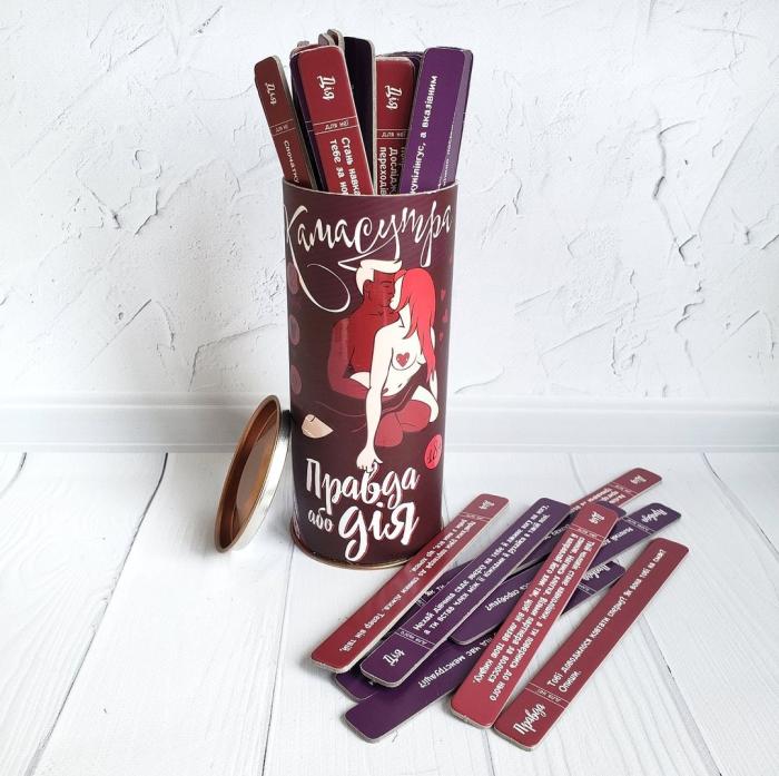 Кратко о правилах: Все очень просто: вы по очереди тянете стики. Бордовая сторона - задача для нее, фиолетовая - задача для него. Если на стике написано «Правда» - отвечаете на вопрос, если «Действие» - приступаете к выполнению задания. Мы попытались сделать так, чтобы обоим партнерам досталось одинаковое количество внимания. Вы имеете право отказаться от любого задания, ведь это только игра. Однако помните: возможно, у вас не будет другого шанса попробовать то, чего вам так давно хотелось.