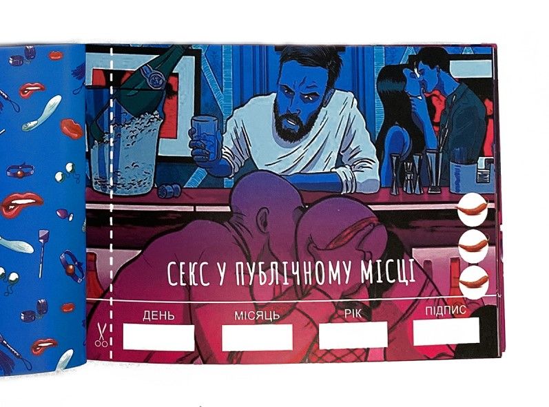 30 чеков самых разных сексуальных фантазий и желаний, которые разнообразят вашу интимную жизнь. Это пожалуй, лучший подарок для обоих партнеров, так как обе стороны останутся удовлетворенными. Слоган книжки звучит так "от поцелуев, до полного повиновения". Докажите, что ради своего любимого человека вы готовы пройти этот путь.