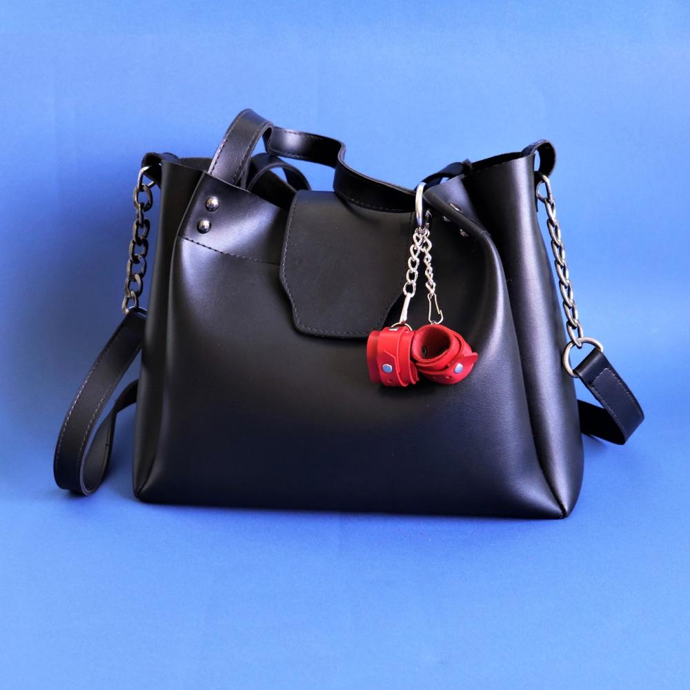 Предлагаем купить брелок наручники красный — дерзкий сувенир, который легко найдет место на вашей сумке, рюкзаке или ключах! Изготовленный из натуральной кожи, он полностью повторяет настоящие наручники.