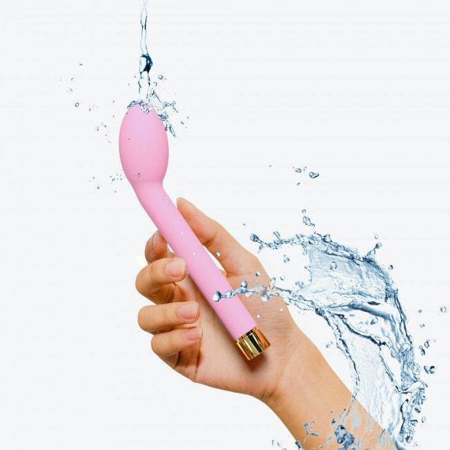 Этот вибратор для точки G сразу привлекает внимание своим внешним видом: трендовый пастельный оттенок, необычная форма и стильные золотистые детали. И, конечно, он очень мощный!