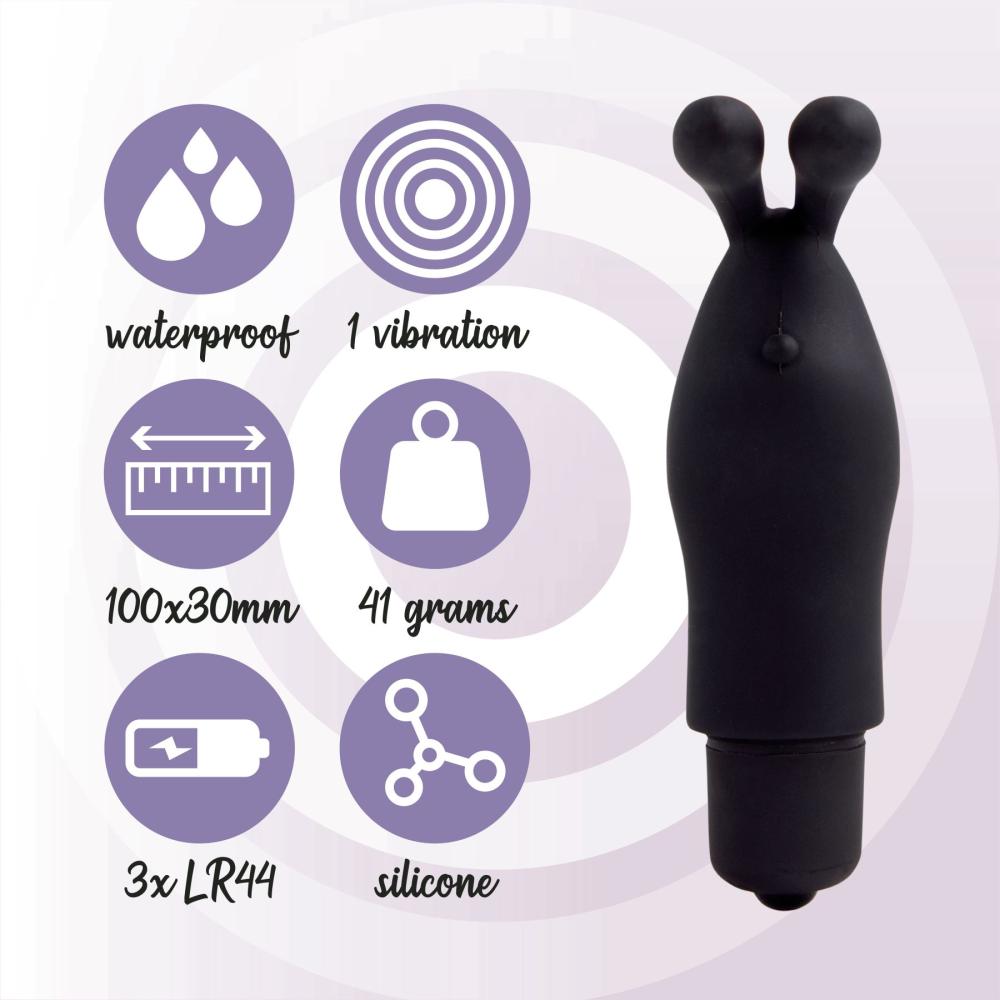 Ласкать, дразнить, уноситься в мир фантазий и возбуждающих игр. Хочешь попробовать? Тогда нужно просто купить вибратор на палец FeelzToys Magic Finger Vibrator Black и ласковый кролик своими нежными ушками доведет вас обоих до самых сладких стонов. Широкое силиконовое колечко легко надевается на палец, а мощная вибропуля передает глубокую вибрацию на ушки, а дальше — дело за вами, ведь таким вибрирующим пальчиком можно ласкать любые эрогенные зоны обоих партнеров! Работает от батареек.