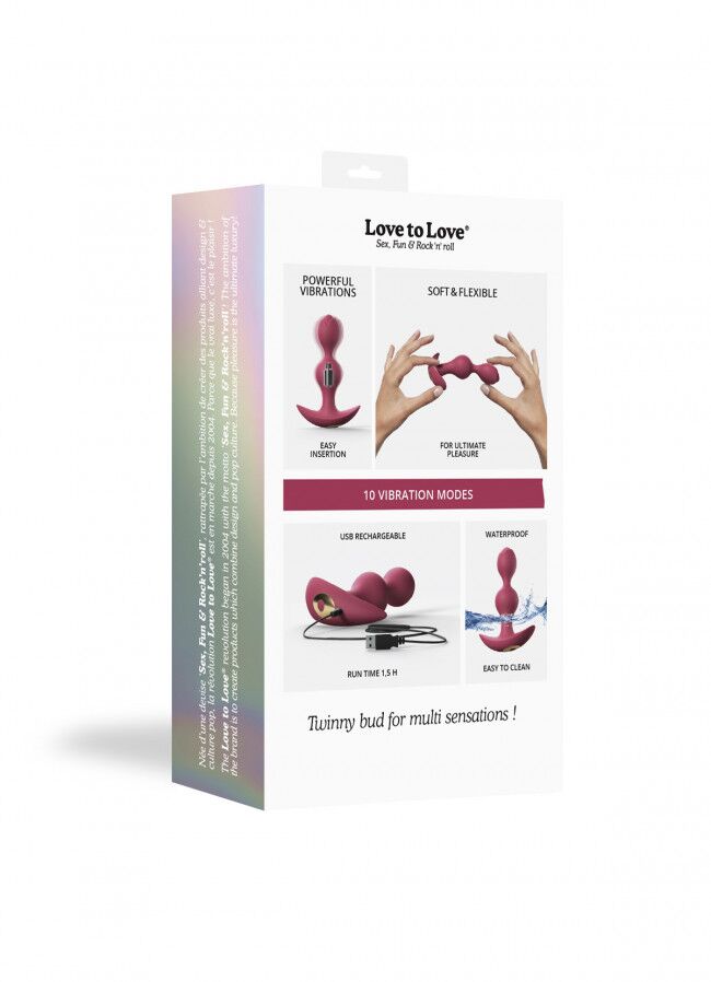 Мягкость и гибкость — вот главные характеристики этой чудесной игрушки. Анальный стимулятор, гибкий с вибрацией Love To Love TWINNY BUD подойдет и для первого опыта анальных игр, и для более продвинутых развлечений. Дело в том, что вводить можно как только верхний шарик, меньший по диаметру, так и оба сразу.