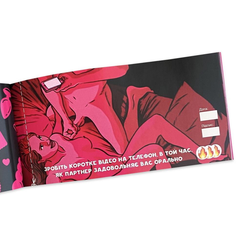 С “Чековой книжкой SEX желаний - Новый уровень” (50 чеков) Вы получите возможность реализовать самые смелые фантазии, подарить друг другу новые впечатления и состояние. В книжке Вы найдете: