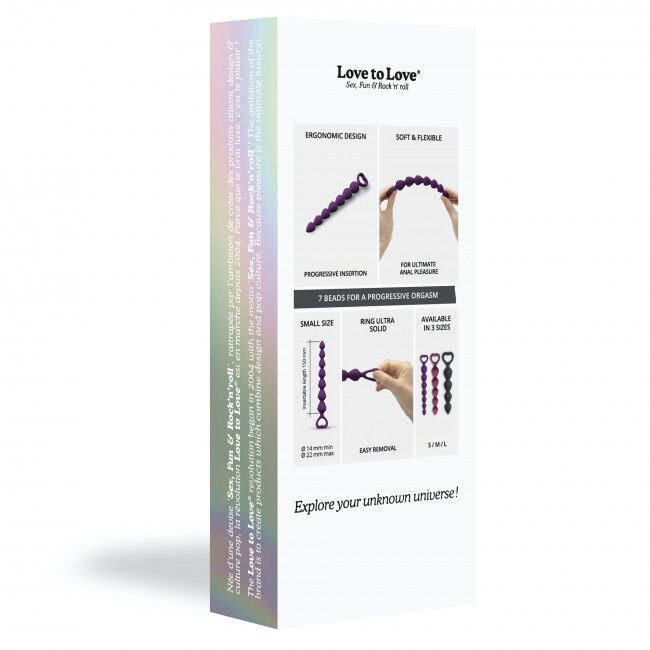 Вводите анальную цепочку Love To Love BING BANG по одной бусине или всю сразу — только вам выбирать интенсивность удовольствия! Не забывайте использовать смазку на водной основе и промывать игрушку теплой водой после каждого использования.