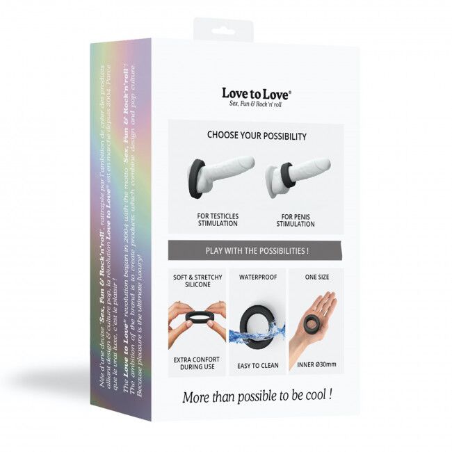 Диаметр эрекционного кольца широкого Love To Love COOL RING 3 см, растягивается до ~8 см. Примеры использования можно найти прямо на упаковке кольца. Легко очищается теплой водой и подходит для любого размера пениса.