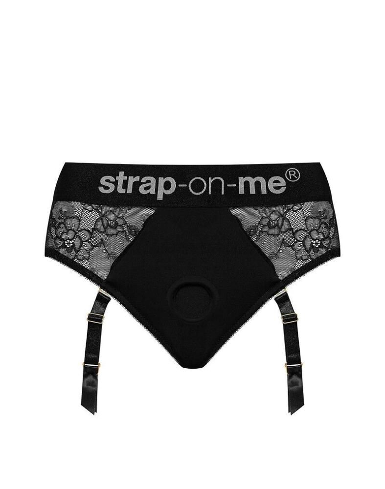 Роскошные кружевные трусы для страпона с подвязками для чулок Strap-On-Me DIVA HARNESS помогут создать шикарный образ и настроение для ваших самых крутых сессий!