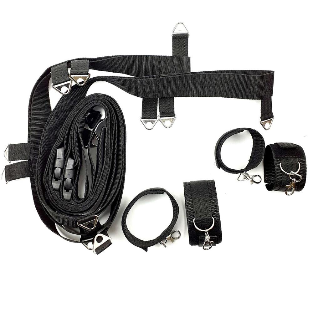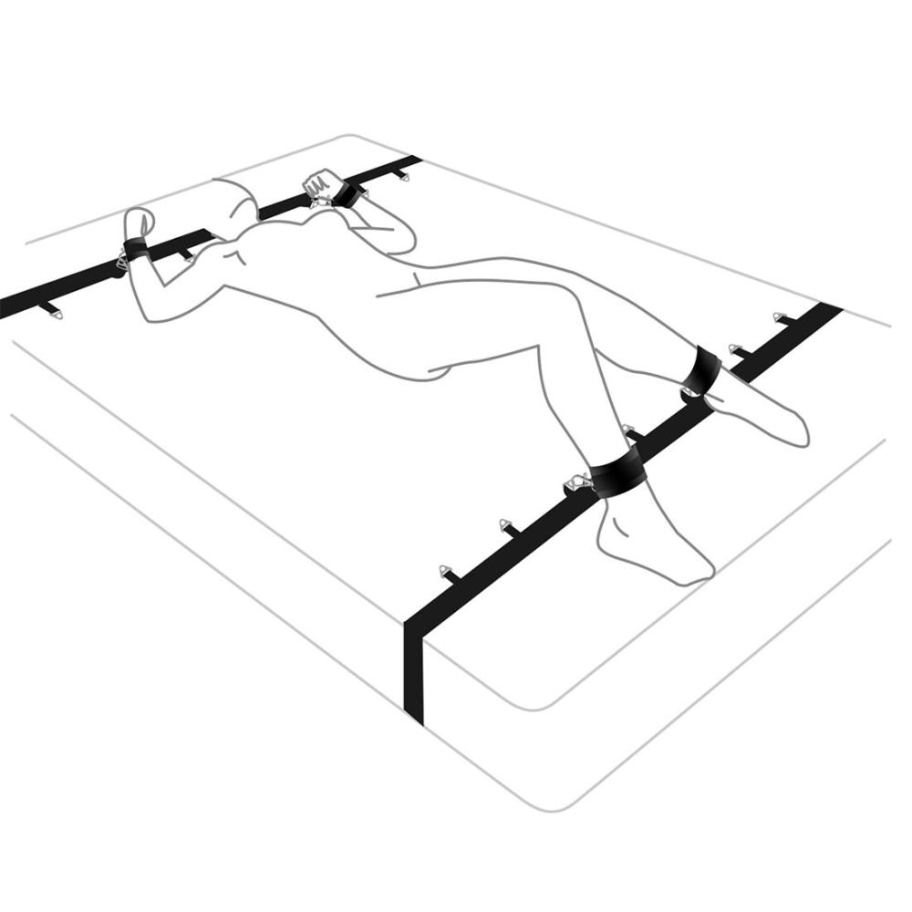 Растяжка представляет собой набор из широких ремней с кольцами и двух пар регулируемых наручников, которые крепятся к кольцам. Ремни надеваются на матрас, а к запястьям и лодыжкам партнера крепятся наручники. Пошевелиться невозможно, единственная подвижная часть тела, доступная привязанному партнеру, — голова. Ртом можно делать все, что пожелает ваш Доминант. Для более качественной прожарки рекомендуем перевернуть партнера на живот и снова пристегнуть к растяжке.