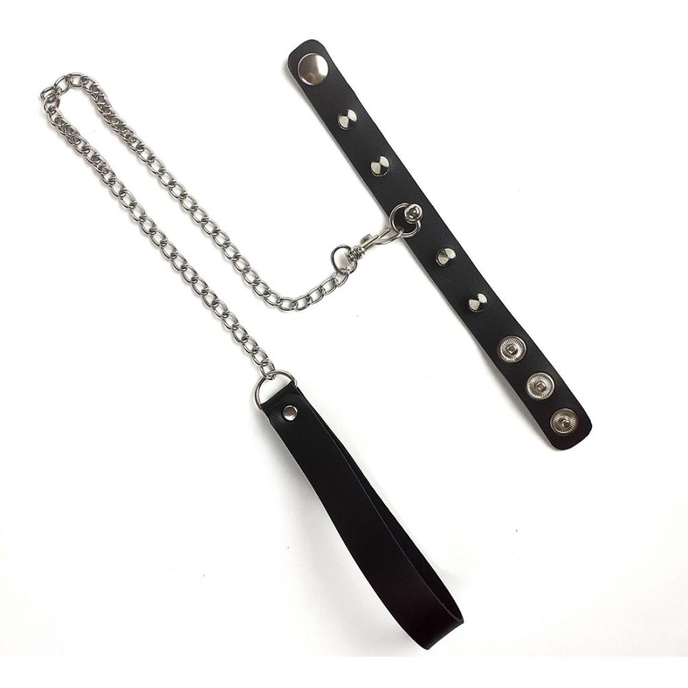 Кольцо для пениса украшено шипами, это кольцо не даст возможность никому прикасаться к вашей собственности. Поводок из металла оснащен кожаной ручкой, чтобы регулярно выгуливать партнера по дому было удобно, в первую очередь, для вас.
