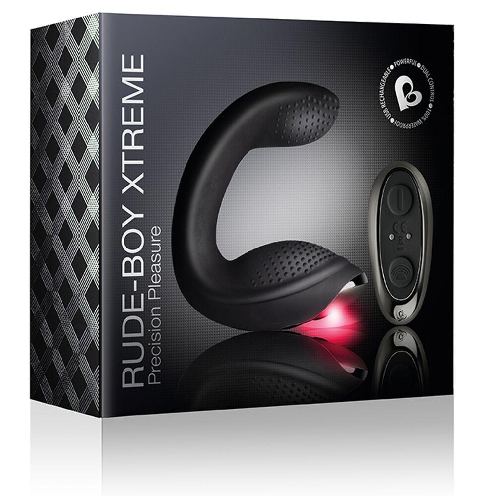 Предлагаем купить массажер простаты Rocks Off Rude Boy Xtreme — действительно мощный, гибкий, комфортный и с двумя моторами для стимуляции точки Р и промежности. Специально разработан для точного попадания на простату благодаря гибкому стволу и загнутой головке. Каждый из моторов работает в 10 режимах вибрации и управляется отдельной кнопкой, так что вы сможете создать огромное количество комбинаций для удовольствия! Можно использовать массажер в любом месте, в том числе и в ванне, ведь он полностью водонепроницаемый. В комплекте — заряжаемый пульт ДУ.
