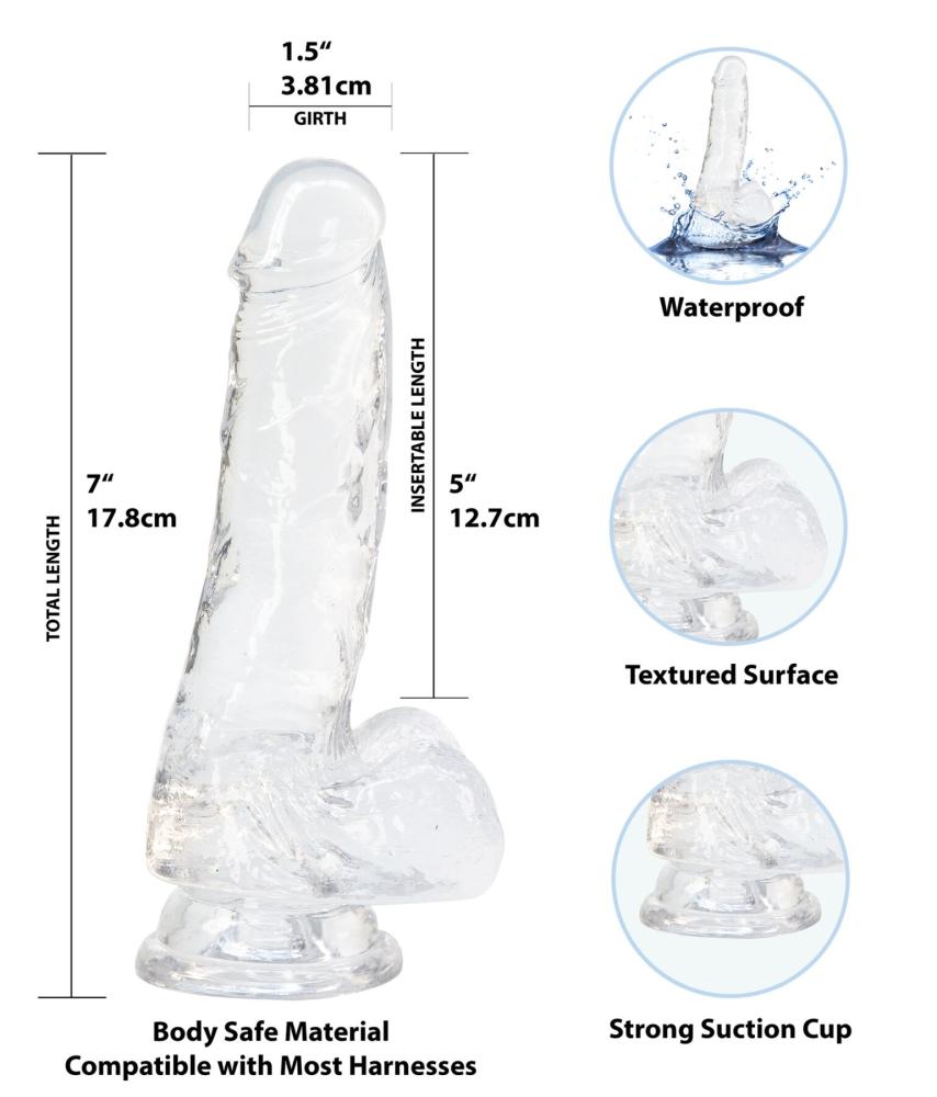 Прозрачный фаллоимитатор ADDICTION — Clear Dildo with Balls прост в очистке и прослужит вам долгое время. Вибропуля работает от батареек, батарейка в комплекте.