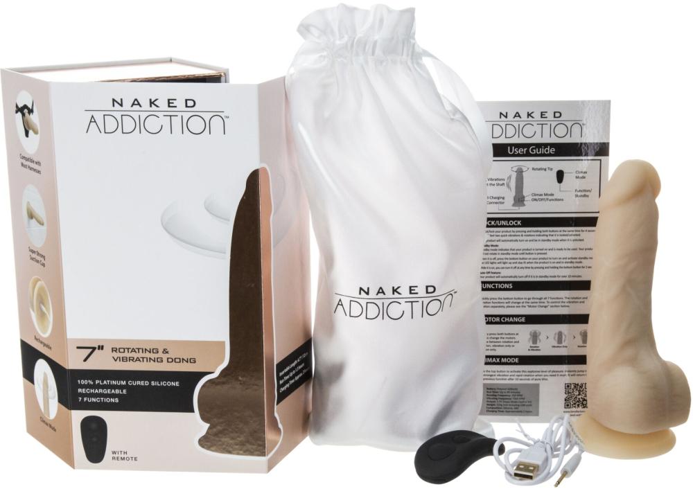 Восхитительная многофункциональная игрушка для глубокого удовлетворения вашей страсти! Предлагаем купить фаллоимитатор с вибрацией и ротацией Naked ADDICTION James 7″: он не только мощно вибрирует и вращается на 360° в 7 режимах (оба мотора могут работать и синхронно, и автономно), но еще и надежно крепится к любой гладкой поверхности и подходит к большинству ремней для страпона. Реалистичная текстура, приятный и износостойкий силикон премиального качества, автономное управление вибрацией и ротацией — в нем есть все, чтобы улететь в страну эротических фантазий. Дополнительный бонус — пульт ДУ в комплекте обеспечивает комфортное переключение режимов прямо в процессе!