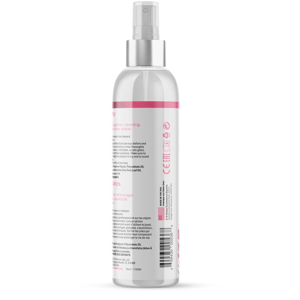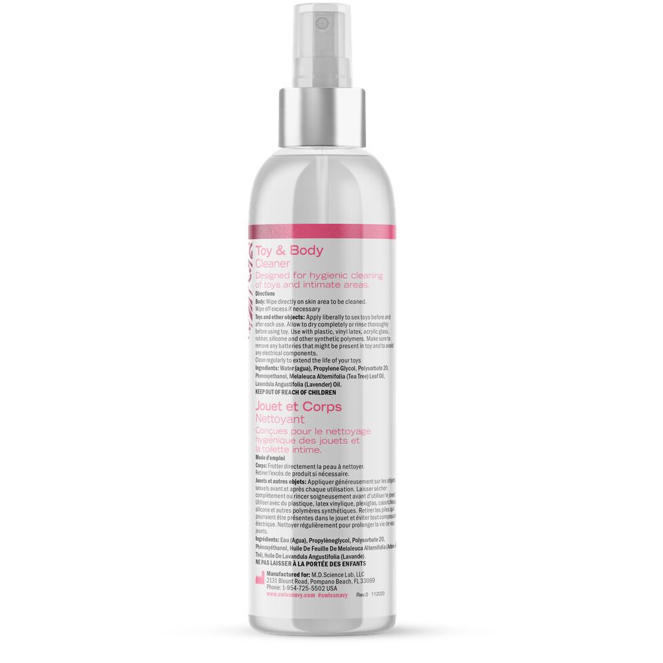 Чистота — это залог не только здоровья, но и долгого срока службы ваших игрушек для взрослых! Поэтому рекомендуем купить очищающее средство Desire by Swiss Navy Toy & Body, которое быстро и эффективно очищает игрушки из силикона и других синтетических материалов. В состав входит обеззараживающее масло листьев чайного дерева и масло лаванды, обладающее антисептическим эффектом — натуральные ингредиенты для эффективной очистки! Средство подходит также для тела. Поставляется в удобном флаконе с распылителем.