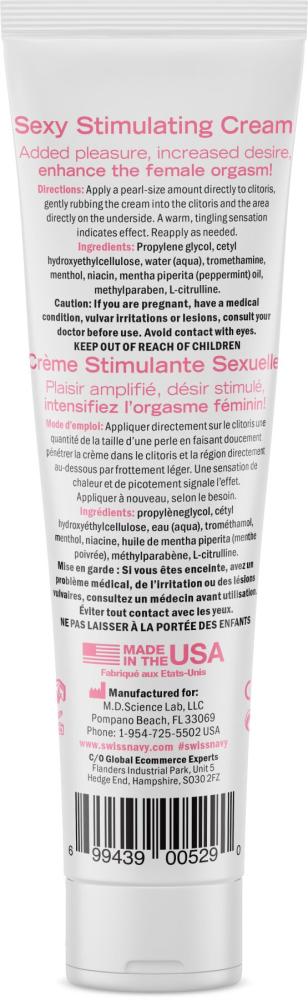 Проявить свою сексуальность в полном объеме и сполна насладиться близостью легко — достаточно купить возбуждающий крем Desire by Swiss Navy Sexy Stimulating Cream. Он вызывает прилив тепла и легкое покалывание в зоне нанесения, и конечно яркое нарастающее возбуждение. Заметный эффект достигается благодаря L-цитруллину в составе: аминокислоте, которая ускоряет кровоток и способствует приливу крови к самым чувствительным зонам. Несколько секунд, и волны возбуждения захватят вас полностью! Приятная кремообразная текстура, без липкости, и удобная туба делают использование максимально комфортным.