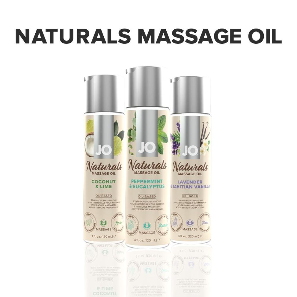 Побалуйте вашего партнера настоящим релаксом, переходящим в мощное возбуждение, купите массажное масло JO – Naturals Massage Oil – Peppermint & Eucalyptus.