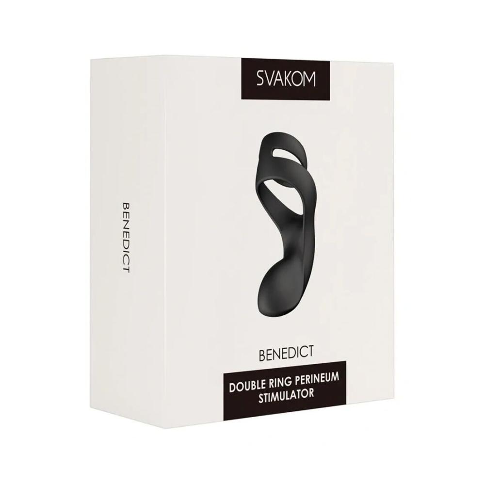 Двойное эрекционное кольцо Svakom Benedict Black со стимуляцией промежности — отличный способ разнообразить свою сексуальную жизнь. Вы сможете поразить партнера или партнершу супермощной и долгой эрекцией, получить особо яркие ощущения и сделать удовольствие завершенным благодаря вибрации.