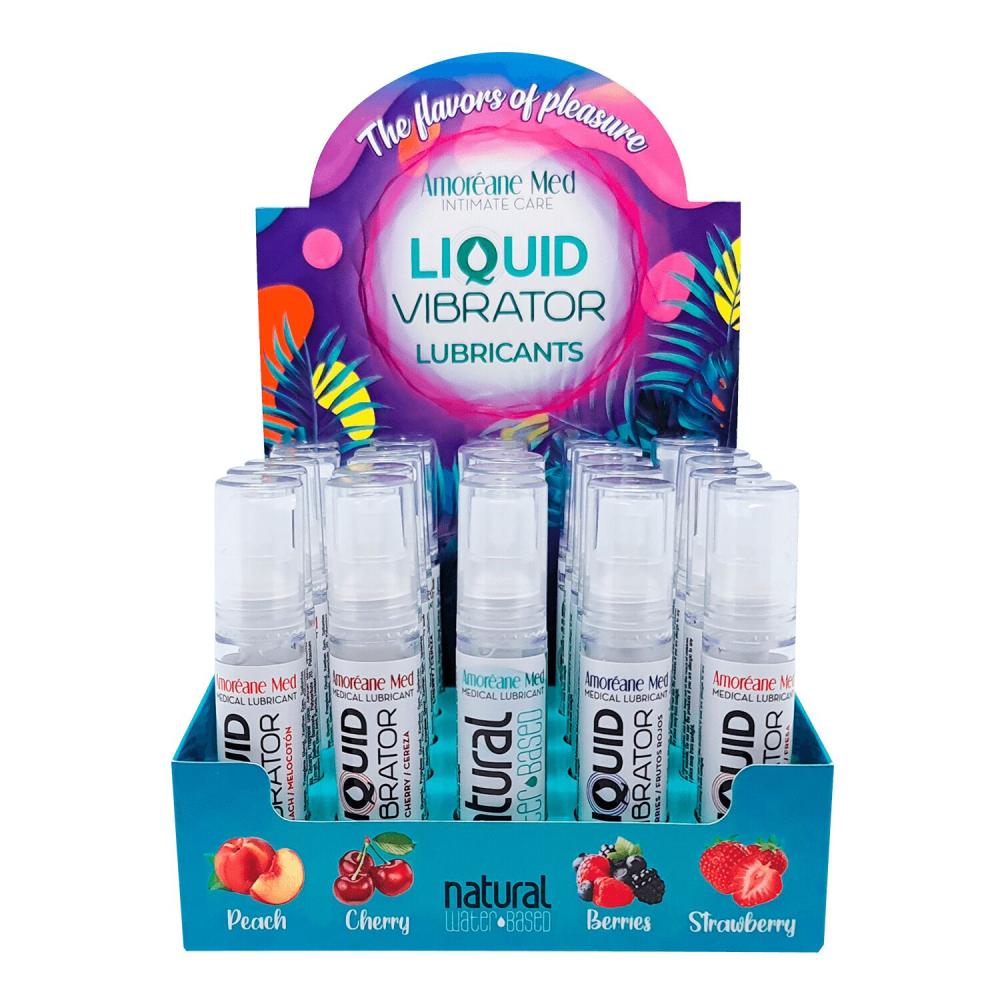 Данный набор содержит 4 вида лубрикантов с эффектом жидкого вибратора и лубрикант на водной основе с фитопланктоном. Каждый вид лубриканта представлен в бутылочках 10 мл, по 5 штук каждого.