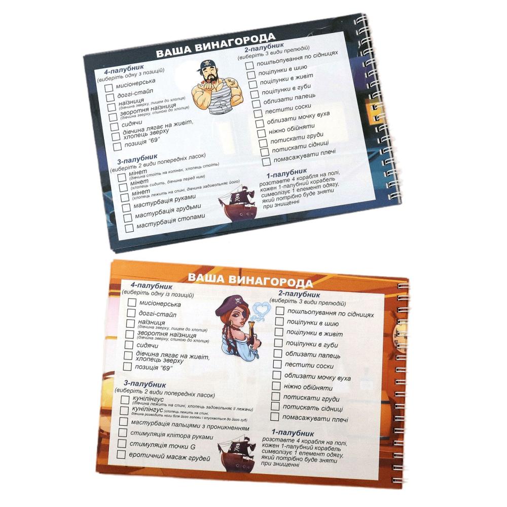 Вы когда-нибудь играли в морской бой? Ну конечно, ведь это развлечение способно занять не на один час! А если это будет морской бой для взрослых, где за каждый подбитый корабль следует эротическое вознаграждение? Предлагаем купить эротическую игру “Морський бій - Постільна версія”, которая не только поможет весело провести время, но и сблизит вас с партнером и поможет лучше узнать сексуальные предпочтения друг друга. Вам понадобится только ручка и немного смелости — и вперед, на абордаж!