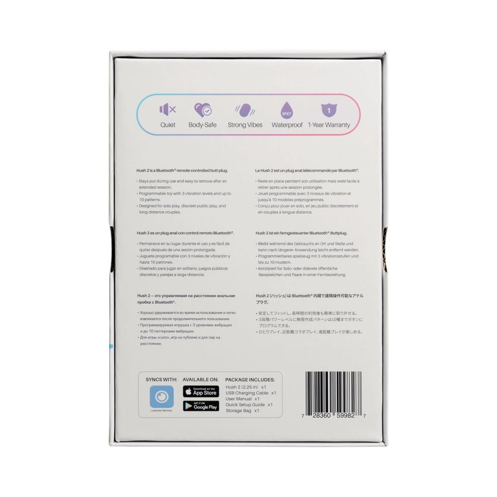 Хотите поиграть дома или рискнуть и отправиться с пробкой в людное место? Анальная смарт-вибропробка Lovense Hush 2 прекрасно подойдет для всего! Не забывайте использовать лубрикант на водной основе и после каждой игры промывать пробку теплой водой с нейтральным мылом или очищать специальным средством.