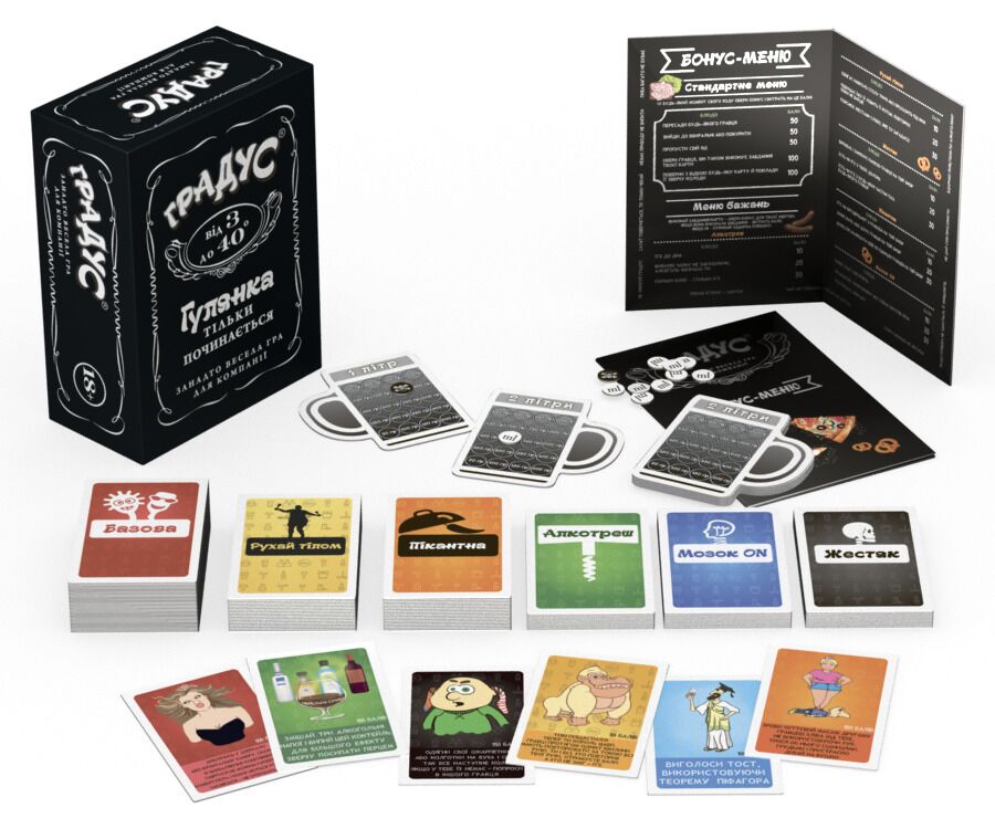 Тематические колоды с заданиями можно формировать по своим предпочтениям, поэтому в Градус будет интересно играть как в компании студентов, так и в рабочем коллективе и даже в семейном кругу, убрав или добавив некоторые колоды.