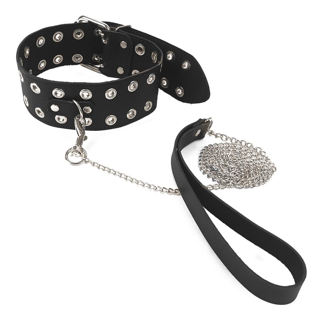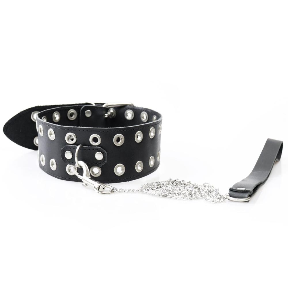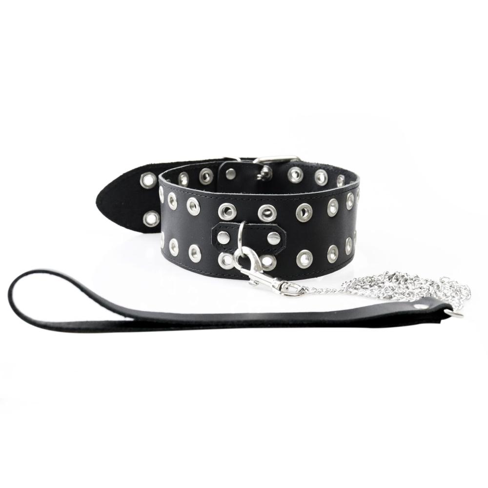 Ошейник Art of Sex -Tessa из натуральной кожи в паре с металлическим поводком – обязательные аксессуары для практикующих ролевые игры с доминацией и покорением. Комфортный ошейник легко регулируется по объему шеи, а поводок можно снимать по желанию или если в этом требуется сценарий. Ошейник декорирован металлическими заклепками для более аутентичного и провокационного вида.