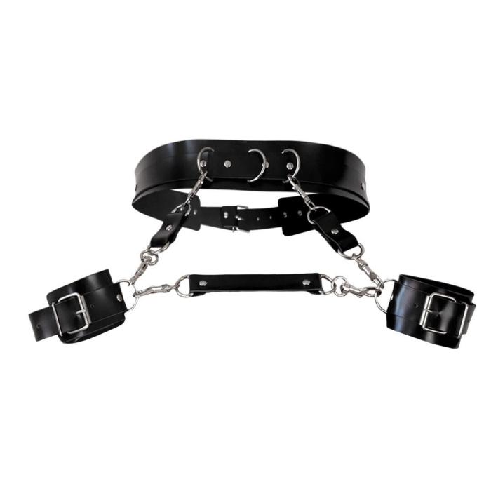 Этот девайс сделан из натуральной кожи, все его элементы крепко соединены между собой металлической фурнитурой — кольцами и карабинами. Наручники и пояс легко регулировать в зависимости от того, насколько сильно вы хотите затянуть партнеру талию и запястья. Широкие наручники мягко ложатся на кожу и с помощью коннекторов могут соединяться между собой и поясом. Второй вариант идеален, если вы хотите частично обездвижить партнера. Этот девайс отлично сочетается с другими аксессуарами BDSM-практик и может принести много захватывающих моментов.