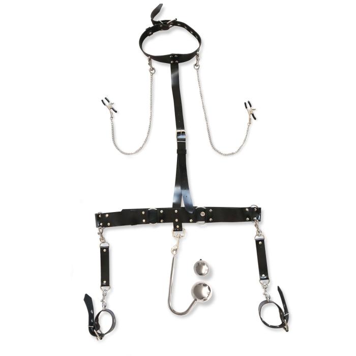 Это оригинальный девайс для тех, кто практикует БДСМ. Бондажный набор Bridget — с использованием прочного металла и натуральной кожи. Благодаря кожаному поясу и анальному крюку вы с легкостью сможете практиковать подвешивание с использованием веревок для шибари, а ошейник, наручники и зажимы для сосков в разы увеличат яркие ощущения от стимуляции. Это поистине уникальный девайс, который сочетает в себе атрибутику сразу из нескольких видов БДСМ-практик. Попробовать необычное сочетание ощущений и остаться в восторге от насыщенной и глубокой стимуляции эрогенных зон — то, что ждет вас после использования этого девайса.