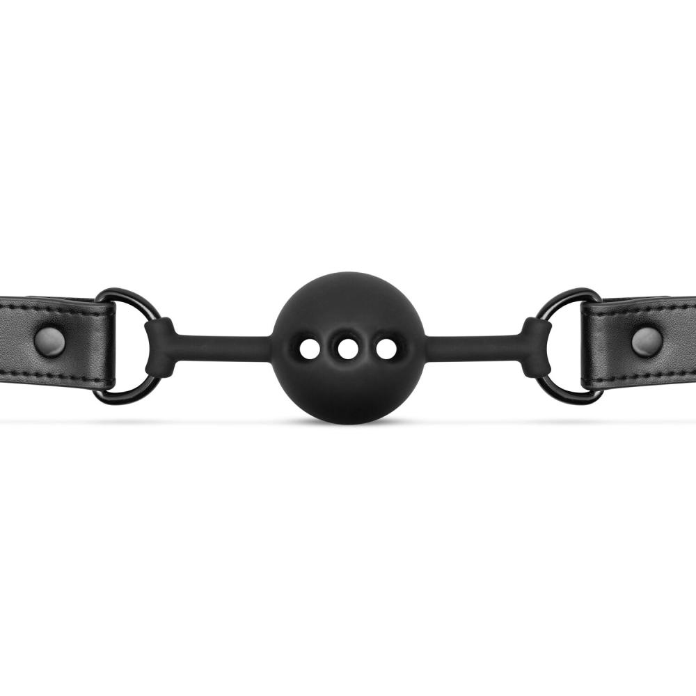 В силиконовом шарике диаметром 41 мм есть три больших сквозных отверстия, что позволяет свободно дышать во время пикантных игр. У шарика также есть два силиконовых «ушка» с металлическими полукольцами с закрепленными ремнями. Они, в свою очередь, сделаны из мягкого веган-френдли кожзаменителя. Ремни легко регулируются по объему головы.