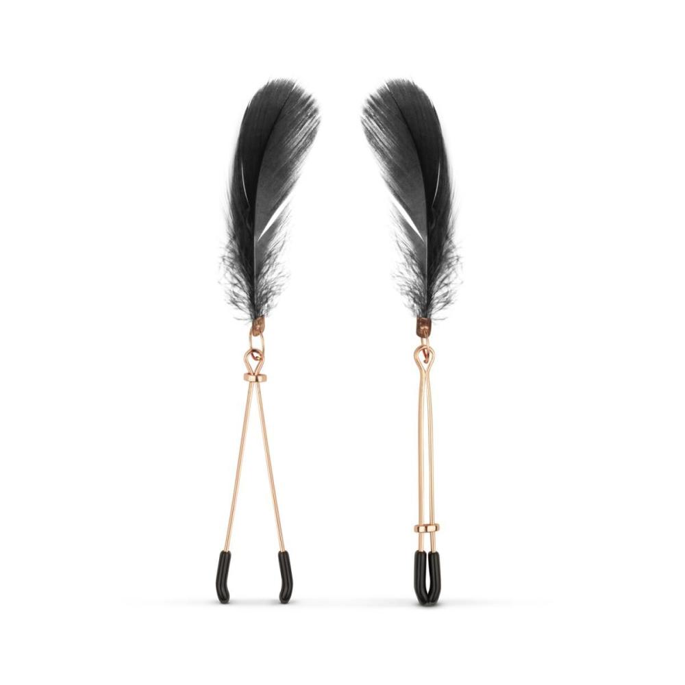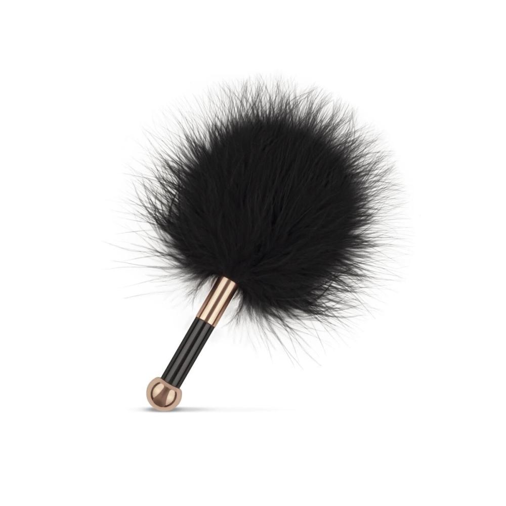 Набор выполнен из искусственной кожи и фурнитуры черного и цвета розового золота. Это непривычное сочетание добавляет великолепия каждому аксессуару. Мягкие широкие наручники и поножи отлично фиксируют запястья и щиколотки, при этом не травмируя их. Цепочки с карабинами позволяют соединить между собой аксессуары или присоединить их к другим предметам — кровати, крестовине и т. д. Тонкий стильный ошейник смотрится очень привлекательно на нежной шее. Длинный поводок-цепь крепится к колечку на ошейнике. Металлические зажимы на соски защищены мягкими наконечниками, чтобы не повредить нежную кожу груди. Силу сжатия можно регулировать ползунком. Украшены зажимы черными перышками. Длинная шлепалка и мягкая короткая щекоталка могут взаимоисключать друг друга, а могут работать в паре: поочередное нежное поглаживание и ощутимое шлепанье прикованного партнера могут вызвать бурю возбуждения. Закройте любимому глаза широкой атласной лентой — и смело проводите чувственные эксперименты над его телом, что жаждет ласк и наказаний. Добавьте к сладкой пытке капельки воска из свечи, которая тает при минимальных температурах, и вы получите невероятный набор, экспериментировать с которым можно практически бесконечно.