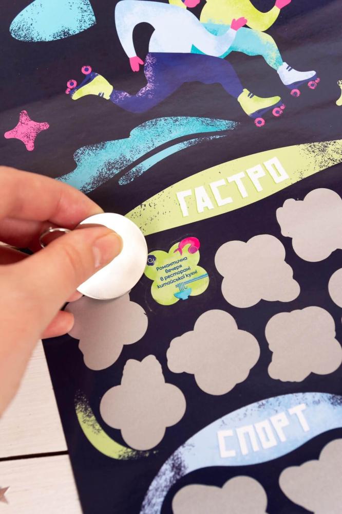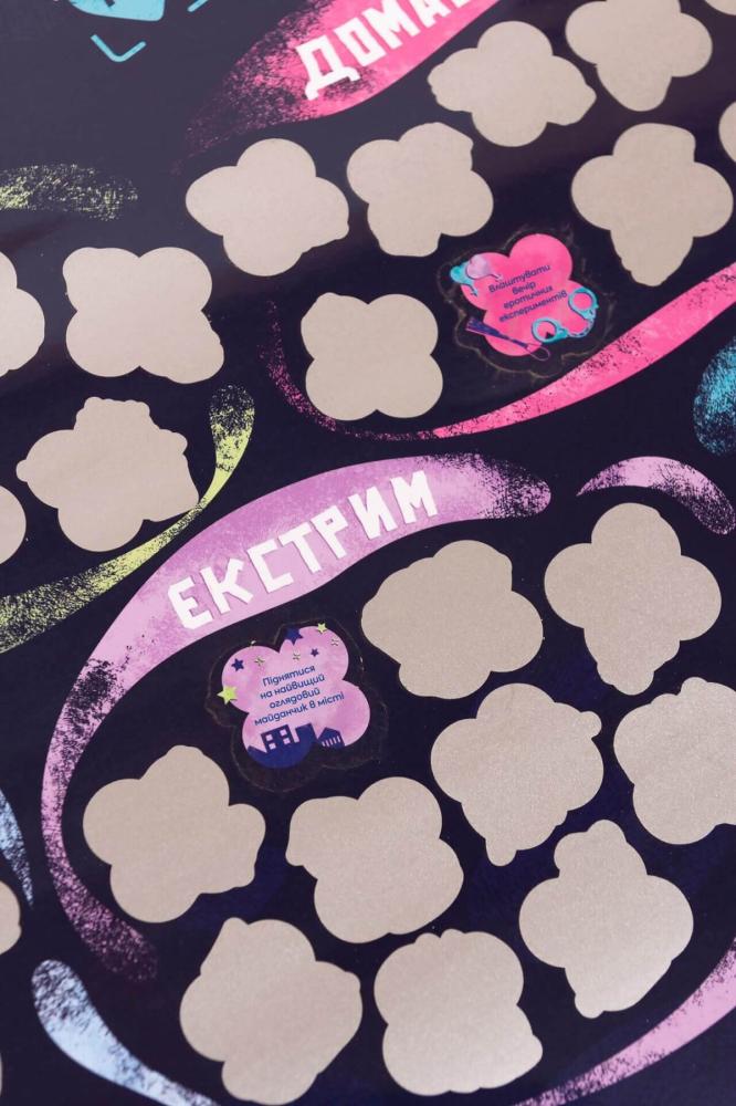 Описание: Если вы искали способ дополнить или украсить свои отношения, вы его нашли. Мы создали для вас скретч-постер свиданий. Теперь вам не нужно «сушить» голову над тем, куда пойти или как порадовать свою половинку — мы обо всем позаботились за вас. Все свидания поделены на несколько категорий: просто выберите, какая из них сегодня вам больше нравится, а остальное уже определит случай. Стирайте защитное покрытие и наслаждайтесь временем, проведенным вместе!