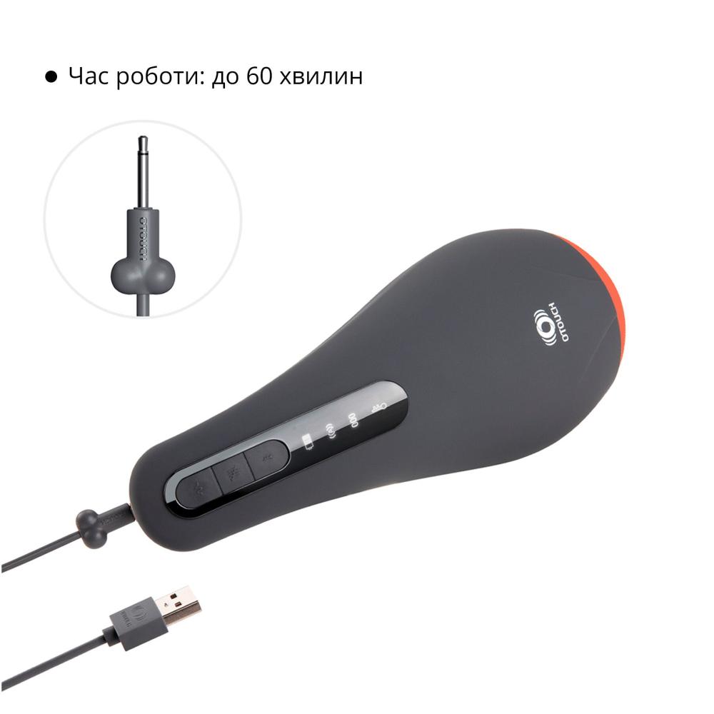 Мастурбатор Otouch AIRTURN 1 перезаряжаемый, будет работать до 60 минут на одном заряде. В комплекте — USB-кабель для зарядки.