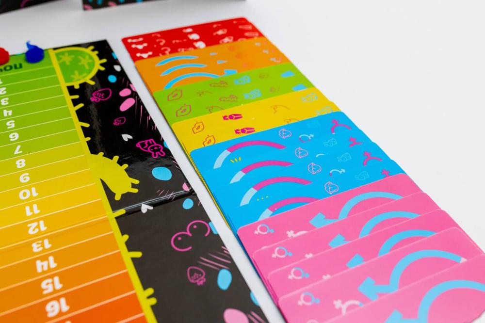 Правила: Участники делятся на команды. Игрок для выбора задания кидает кубик и тянет карту с той стопки карт, которая соответствует грани на кубике. Задания могут быть - объяснить, нарисовать, или показать то, что указано на карте. Далее команда должна угадать, что показывает, рисует или объясняет их игрок. Все это приправлено отыгрыванием определенных эмоций и действий.