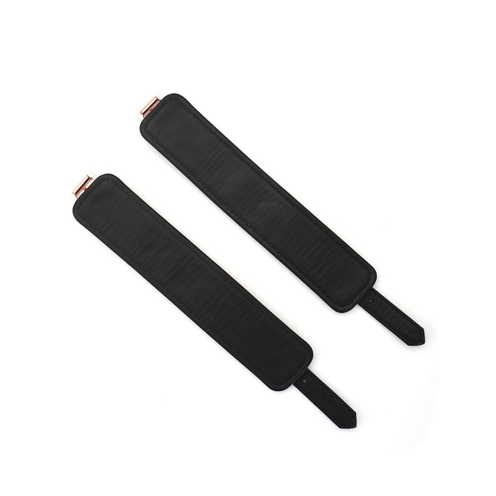 БДСМ-аксессуары из натуральной кожи качественной выделки — это особый шик и показатель стиля. Если же речь идет о кожаных поножах Liebe Seele Wine Red Ankle Cuffs, то это еще и высокая функциональность. Во-первых, они отлично садятся благодаря регулировке с помощью ремня (диапазон регулировки 21–31 см, подойдут для лодыжки от 14,5 см). Во-вторых, их легко можно соединить между собой, с наручниками, крестовиной или другими девайсами с помощью цепочки на карабинах (длина цепочки 24,5 см). В-третьих, поножи снабжены смягчающей внутренней вставкой, что делает их использование безопасным даже при долговременной фиксации. Ну и, конечно, они фантастически выглядят: благородный винный оттенок кожи идеально сочетается с цветом розового золота фурнитуры.