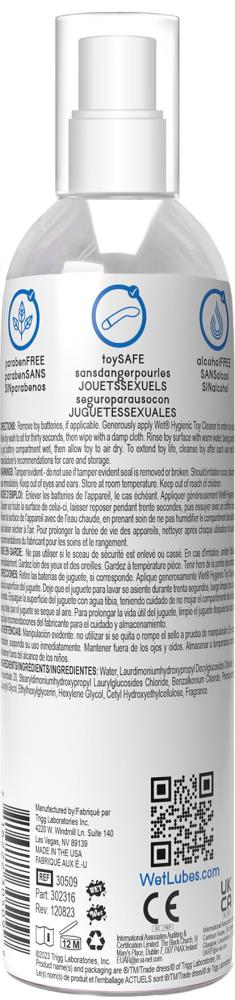 Спрей для очистки игрушек Wet Toy Cleaner легко справляется с загрязнениями и подходит для изделий из любых материалов: резина, силикон, латекс, реалистичные материалы, желеобразная резина и силикон, пластик, металл и стекло.