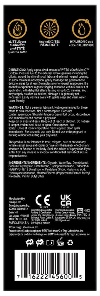 Можно ли получить еще больше удовольствия от стимуляции клитора? Легко, если купить возбуждающий гель для клитора Wet Wow Max O Clitoral Arousal Gel! Приятный и шелковистый на ощупь, он легко наносится и уже через минуту-другую начинает действовать. Вы почувствуете легкое покалывание и усилившееся возбуждение. Начинайте стимуляцию — и wow-эффект гарантирован!