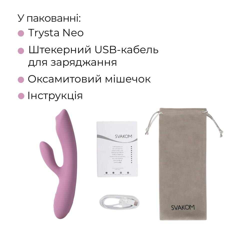 Максимум возможностей вибратора-кролика с жемчужной стимуляцией точки G Svakom Trysta Neo открывается при синхронизации со смартфоном. Работает с двумя бесплатными приложениями, Svakom и Feel Connect (QR-код для скачивания можно найти в инструкции к вибратору, а также скачать приложения напрямую в App Store либо Google Play).