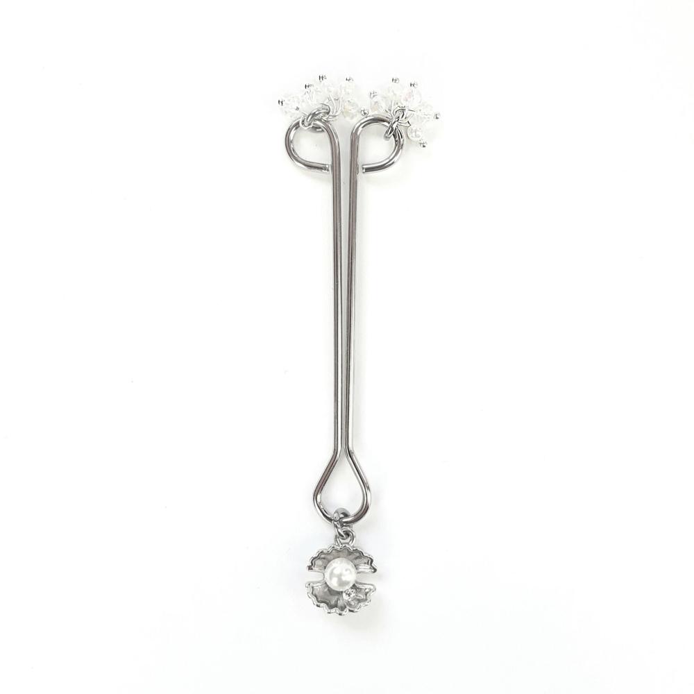 Затискач для клітора перлина з мушлею та кристалами Art of Sex — Margie clit clamp, Срібло — оригінальний та естетично привабливий затискач у морській тематиці, має дуже ніжний та жіночний вигляд. Підвіска з перлиною прикрашає затискач і рухається в одному темпі з тілом своєї власниці. Затискач має регулятор, щоб змінювати силу стиснення на ваш смак, а також оснащений силіконовими накладками для більш безпечного використання.
